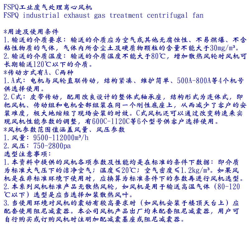 FSPQ工業離心通風機